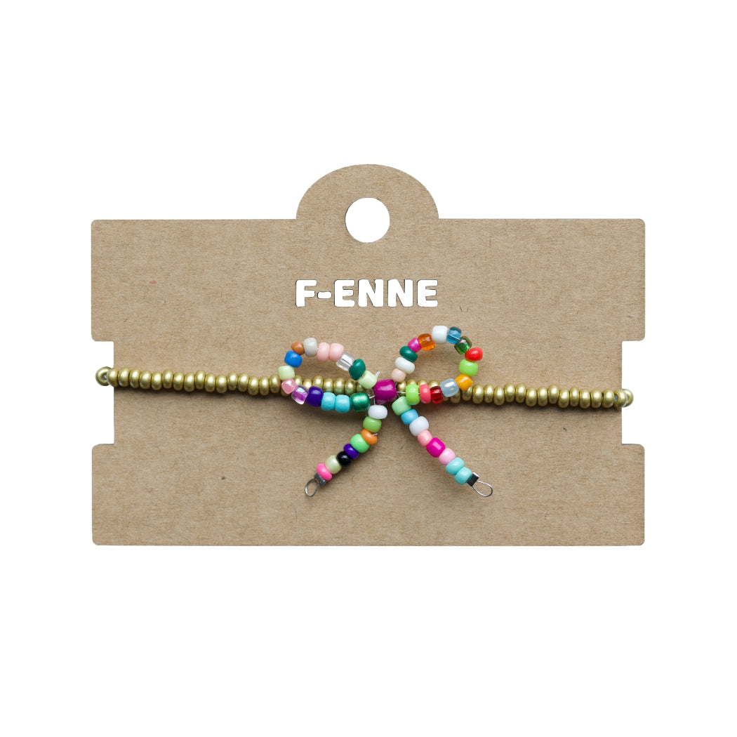 De armband is handgemaakt van glaskraaltjes en versierd met een strikje dat volledig is gevormd uit kleine kraaltjes! Een statement dat zorgt voor een speelse, vrolijke uitstraling.
