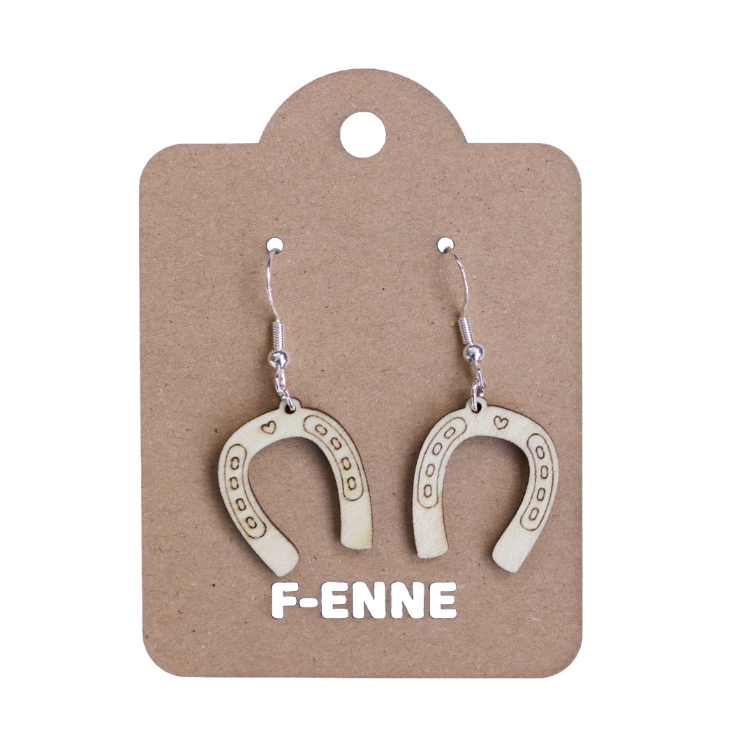 Oorbellen - Hoefijzer houten hanger