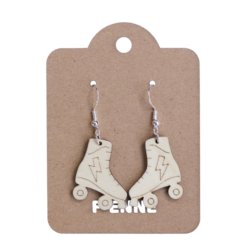 Oorbellen - Rolschaatsen houten hanger