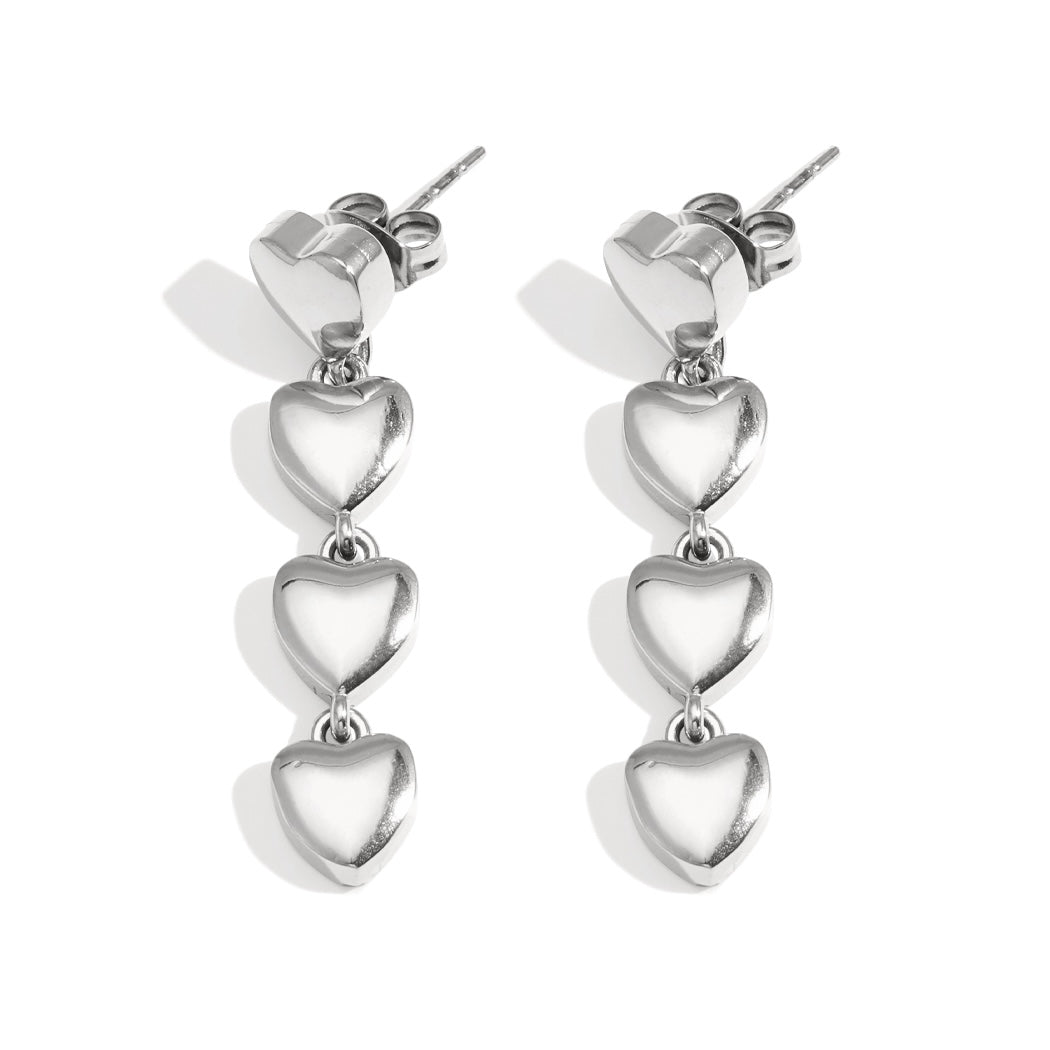 Ontdek deze elegante oorbellen van roestvrij staal met subtiele zilverkleurige hartjes, een prachtige toevoeging aan je dagelijkse sieradencollectie. Je draagt ze moeiteloos bij elke outfit, van casual tot chic.